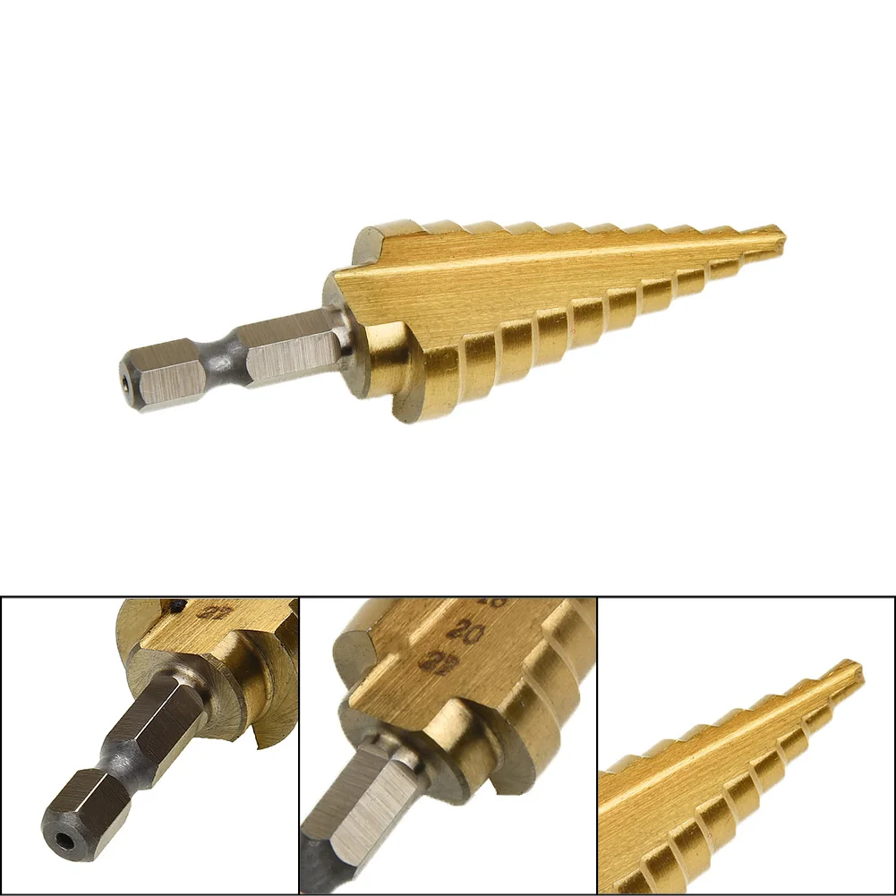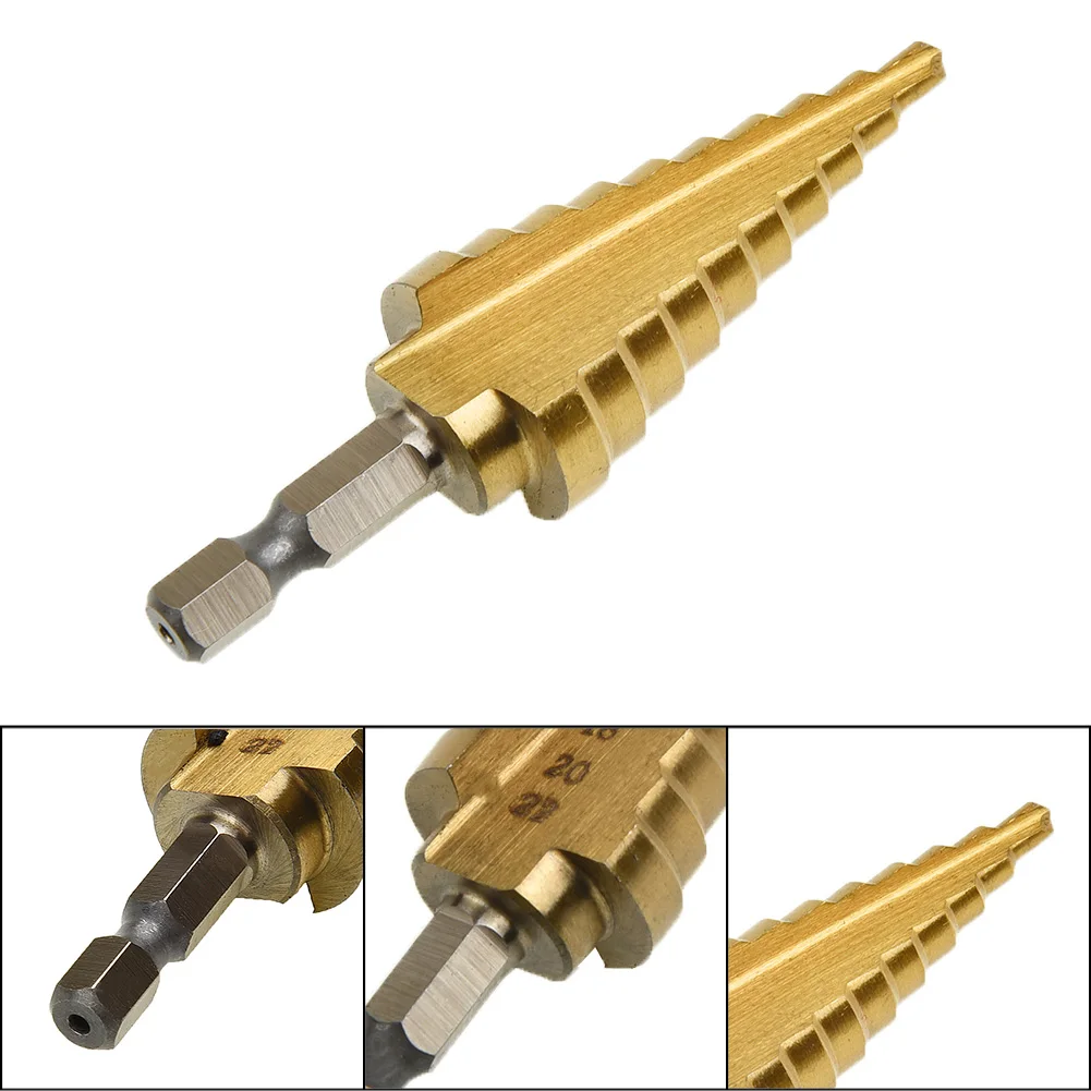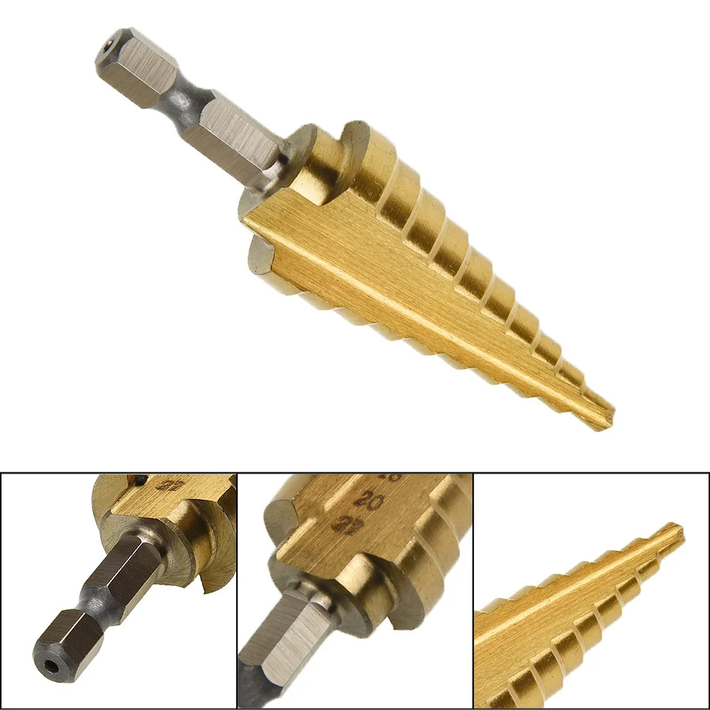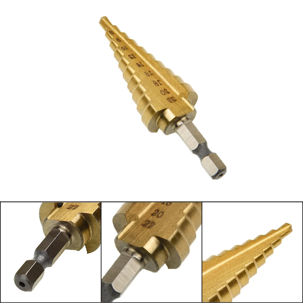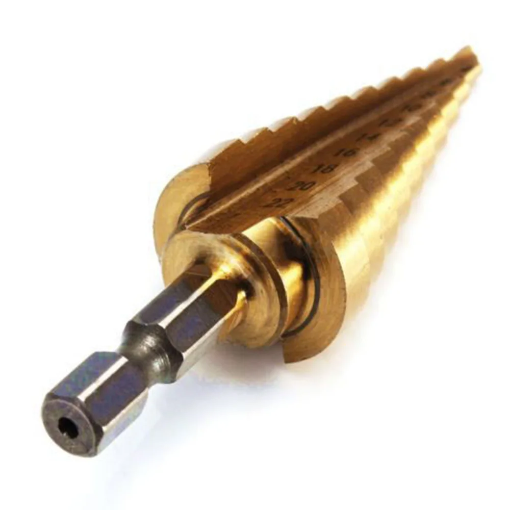 4-22 мм HSS Титан покрытием Шаг сверло дерево дыропробивной пресс конус бурения Мощность инструменты для обработки металла, высокая Скорость Сталь сверла
