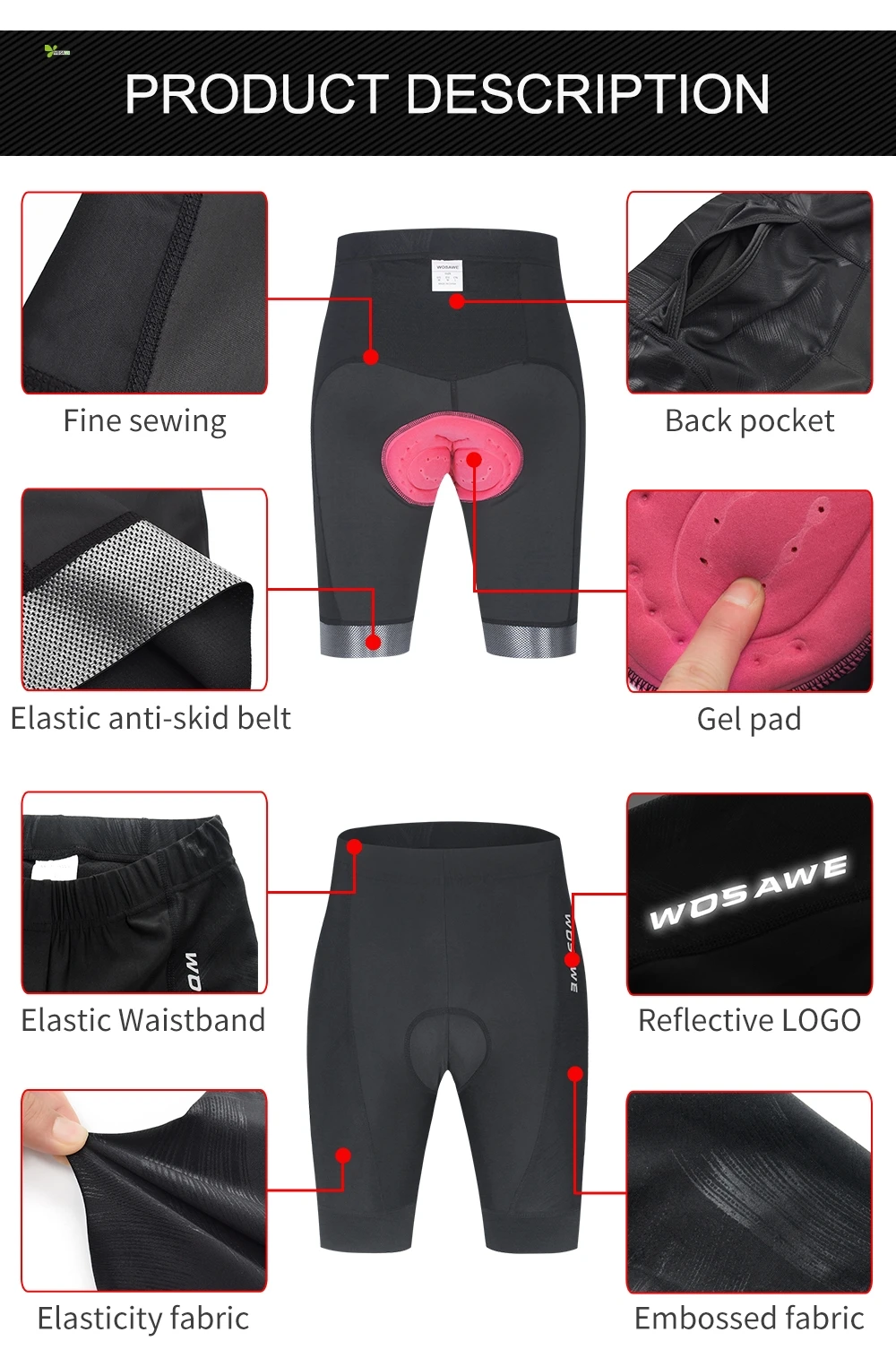 Применимо: более дышащие, быстросохнущие и эластичные.Подходит для долгой и короткой езды, ночной езды, легкой езды по пересеченной местности и короткой дистанции езды на велосипеде.Дизайн и крой: анатомический дизайн с несколькими панелями, эти шорты изготовлены из растягивающейся и дышащей сетчатой ткани с обеих сторон, 3D и бесшовного кроя, чтобы уменьшить обрезку тела, более комфортно и фитнес!Материал: дышащий, используйте более дышащий Быстросохнущий и Сверхлегкий материал, тем не менее, ориентируясь на инженерную работу человеческого тела, используйте подходящий материал, чтобы сделать его более сухим и удобным.Светоотражающий логотип: светоотражающий логотип WOSAWE для видимости на низкий светильник.Эластичная резинка для ног: WOSAWE логотип широкая эластичная резинка для ног с силиконовыми элементами для gri.Карманы: карман на талии для удобного хранения вещей.Гелевая подкладка: уникальная гелевая подкладка WOSAWE с многоохлаждающим отверстием, сохраняет сушку и антибактериальную.Название: женские велосипедные шортыБренд: WOSAWE®Модель: BC169Пол: ЖенскийЦвет: черный с зеленым, черный с краснымРазмер: S M L XLВес: 220 г (XL)Материал: 80% полиэстер, 20% спандексМатериал: Велоспорт, Спорт на открытом воздухеПосылка: полиэтиленовый пакетПрилагается: этикетка