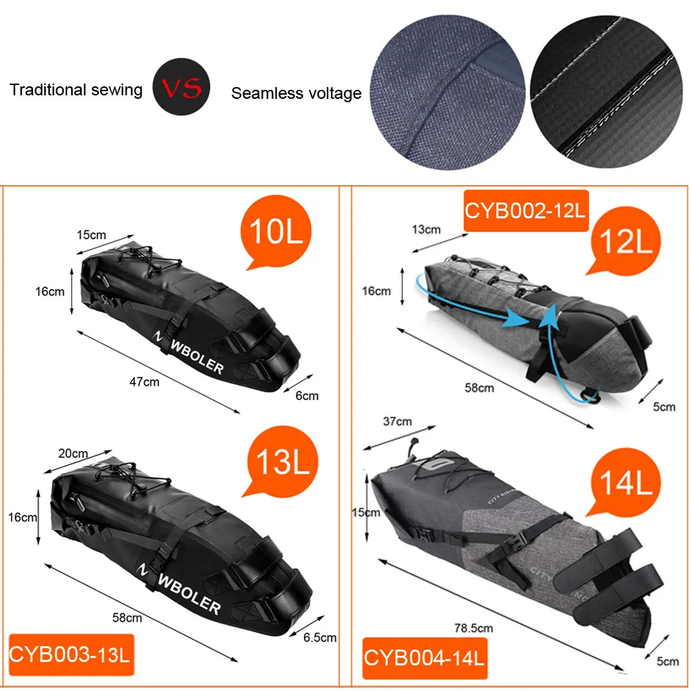 100% водонепроницаемая Светоотражающая велосипедная сумка 10 л/12 л/13/14 л, седельная сумка большой вместимости, велосипедная Складная задняя Сумка для MTB дорожного багажника, велосипедная сумка