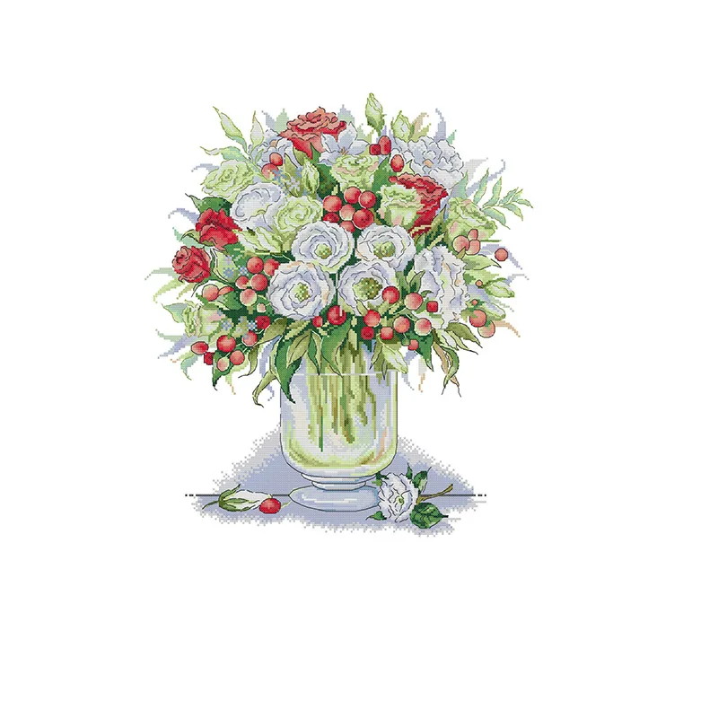 Amishop Вышивка крестом нить Dmc цветок дом с трехмерной аппликацие...