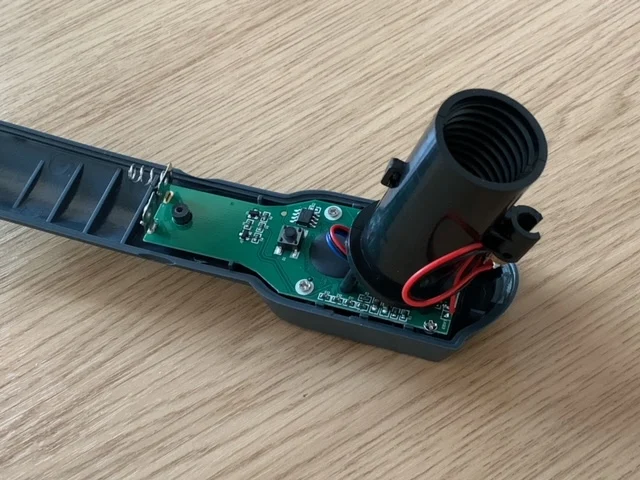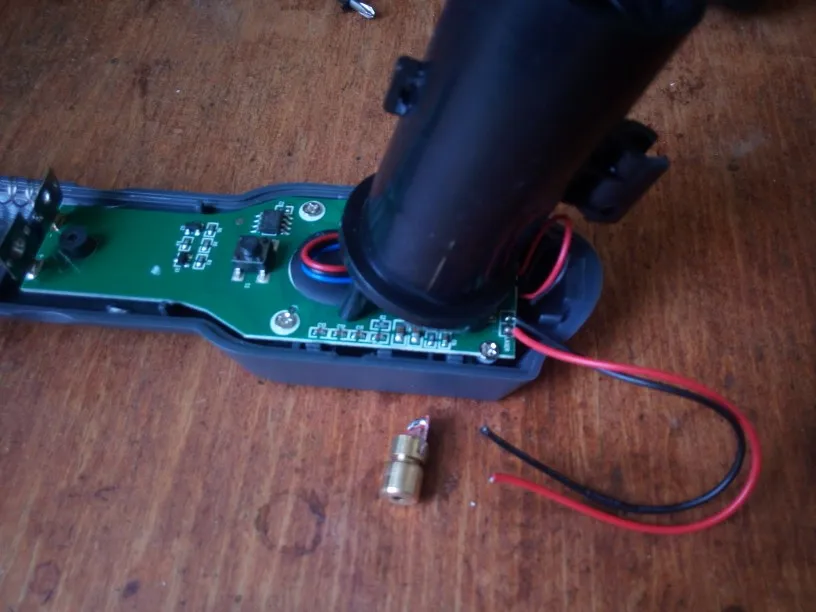 гремел как погремушка, оказалось за время транспортировки лазер отвалился от крепления и оторвался от проводов. пару движений паяльником (если что - минус через резистор идёт) и всё работает :) меряет точно.