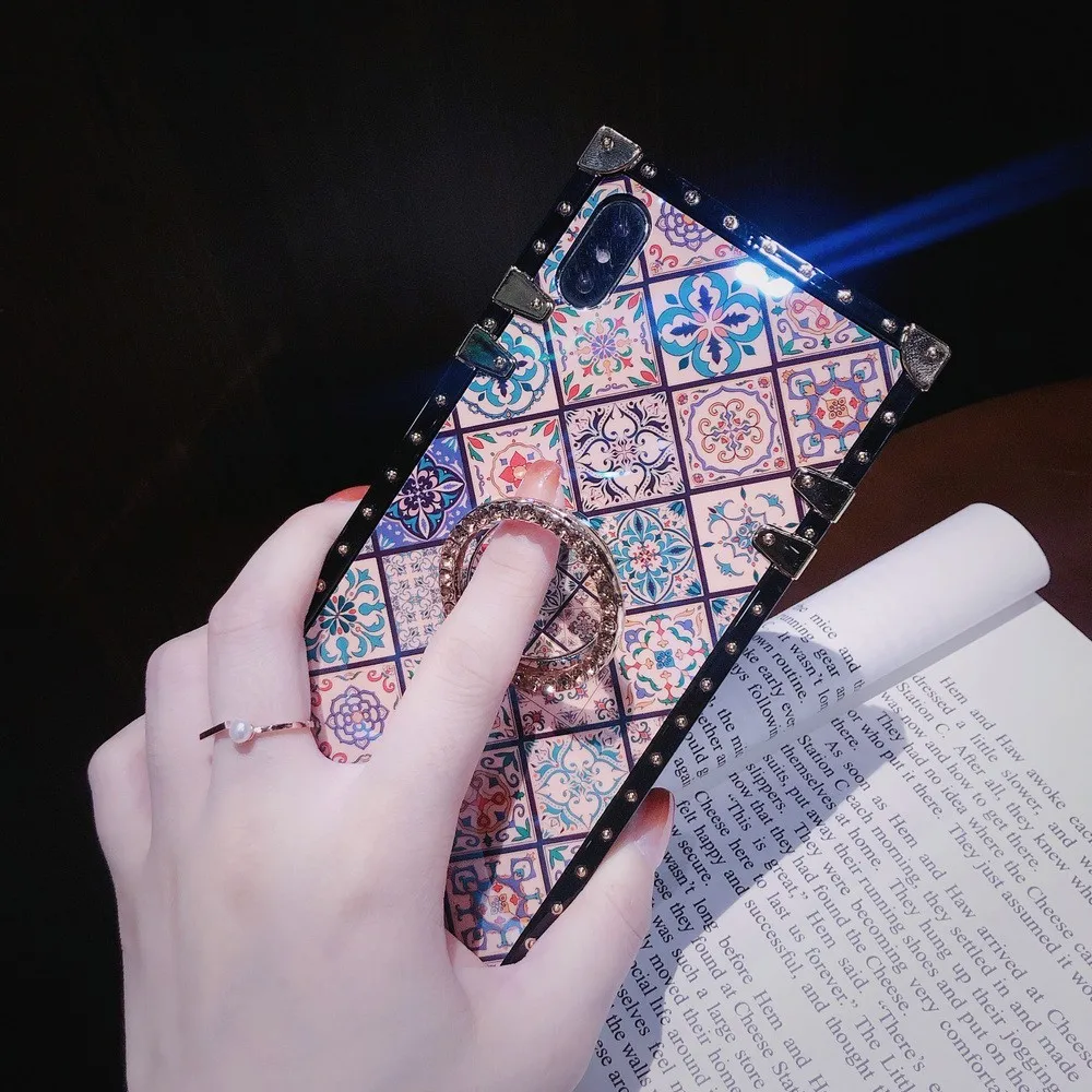 Роскошный квадратный цветочный плед + кольцо чехол для телефона Iph...