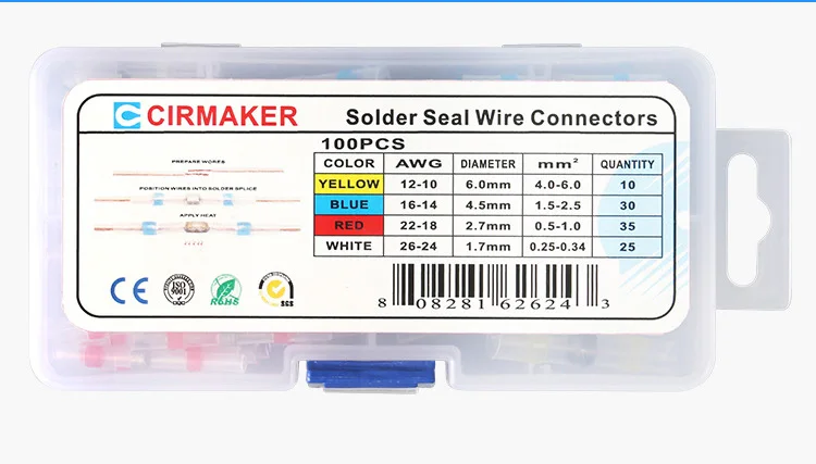 Термоусадочные соединители для пайки, 100 шт., герметичные соединит...