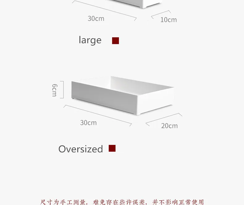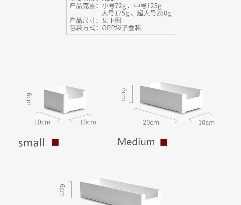 Наименование: Коробка для храненияМатериал: пластикПроцесс: инъекцияСпецификация: 4 видаРазмер: 10*10*6/20*10*6/30*10*6/30*20*6 смЯщик для хранения ящиков позволяет организовывать большие и маленькие ящики упорядоченно, классифицировать хранение, организовывать все виды нижнего белья, косметики, игрушек, школьных принадлежностей, канцелярских принадлежностей, мелочей, посуды, кастрюль и сковородок. Вы можете выбрать различные размеры, чтобы адаптироваться к различным размерам ящиков. Гуманизированный дизайн позволяет повысить эффективность работы. Это ваш рациональный выбор!Примечание: В связи с использованием разных мониторов могут быть некоторые различия в цвете, пожалуйста, обратитесь к фактическому продукту.