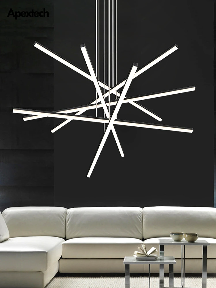 Черные длинные люстра современные ресторанные светодиодный Люстра Северной Европе Гостиная Потолочная люстра офисный Декор Светильник