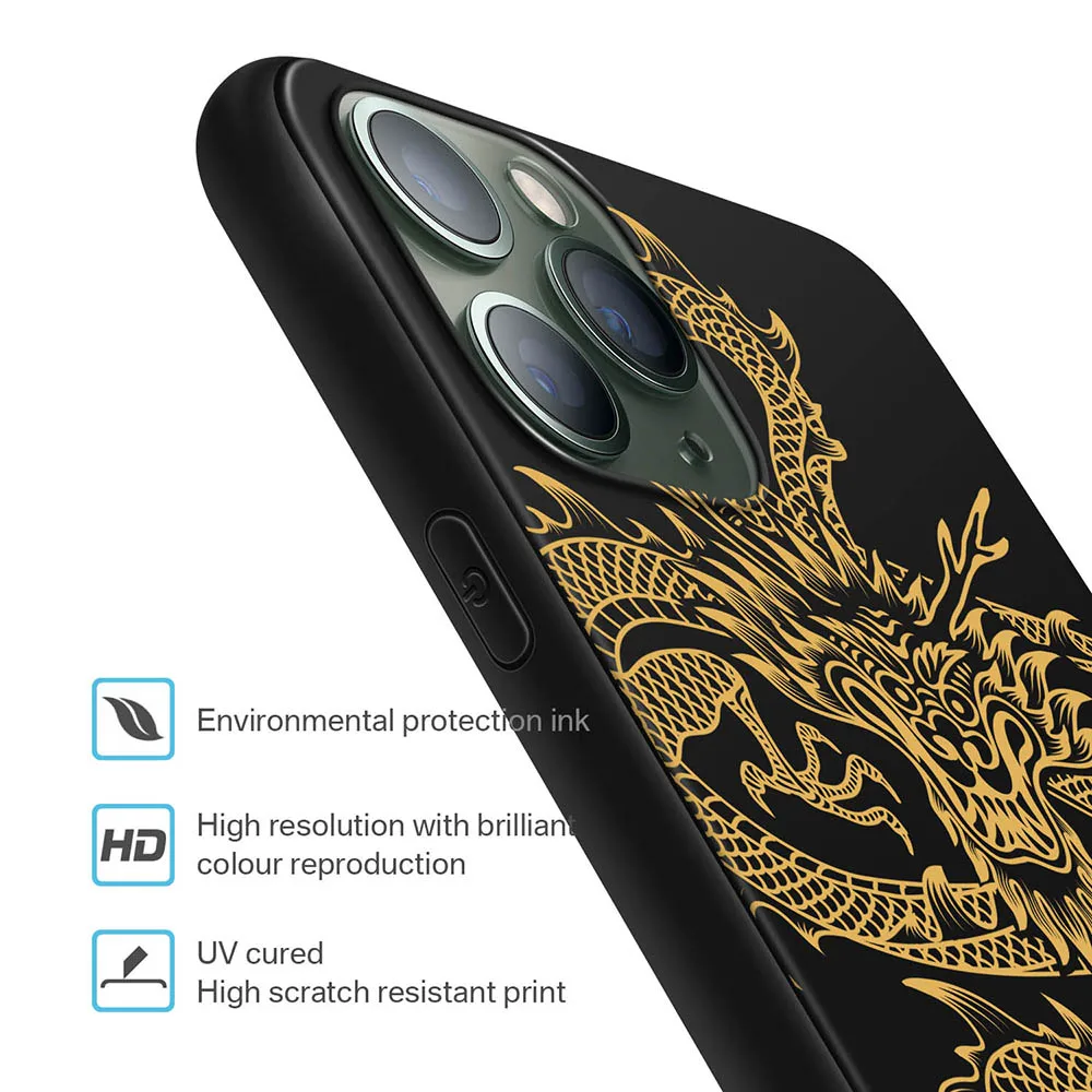Чехол с изображением дракона для iPhone 12 Pro Max, чехол X XS Max XR SE 2020 7 8 Plus, мягкий черный силиконовый чехол, чехол для iPhone 11, чехол