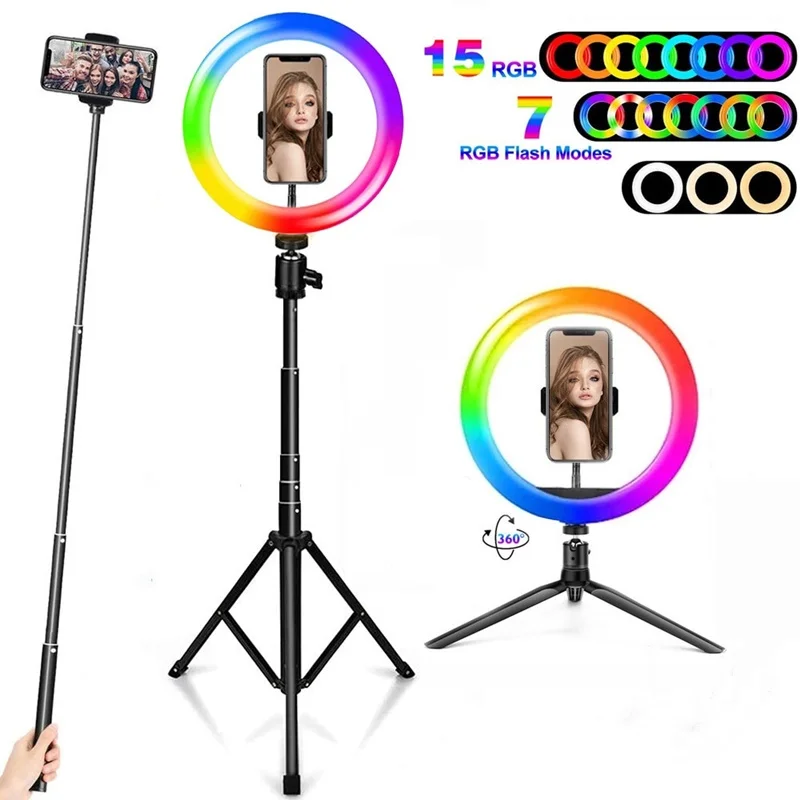 Универсальный селфи RGB Led Кольцевой заполняющий светильник для фотосъемки с регулируемой яркостью RGB лампа со штативом для макияжа видео Live Aro De Movil Luz Para