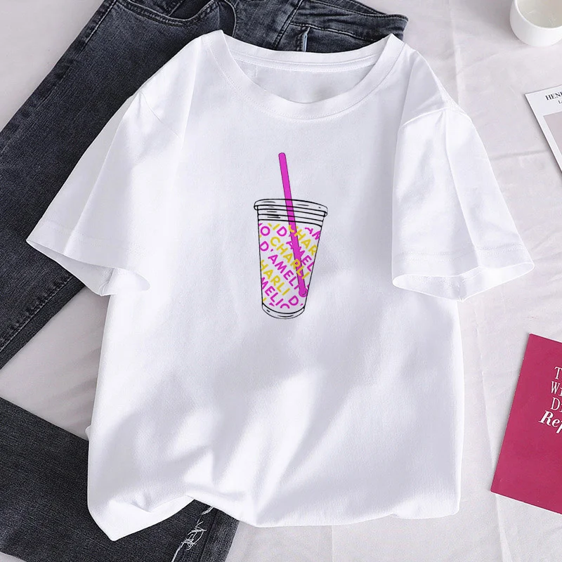 Женская футболка с круглым вырезом и коротким рукавом, футболка Charli DAmelio с графическим принтом льда кофе и брызг в стиле Харадзюку, футболка для девушек