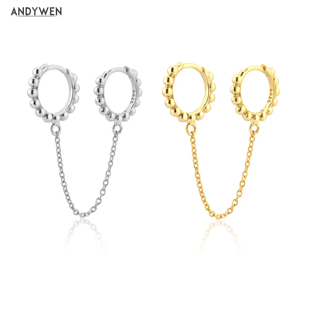 ANDYWEN 925 пробы серебряные золотые бусины Huggies кольца цепи пирсинг серьги клипсы 2021 круглый свадебный подарок ювелирные изделия в подарок