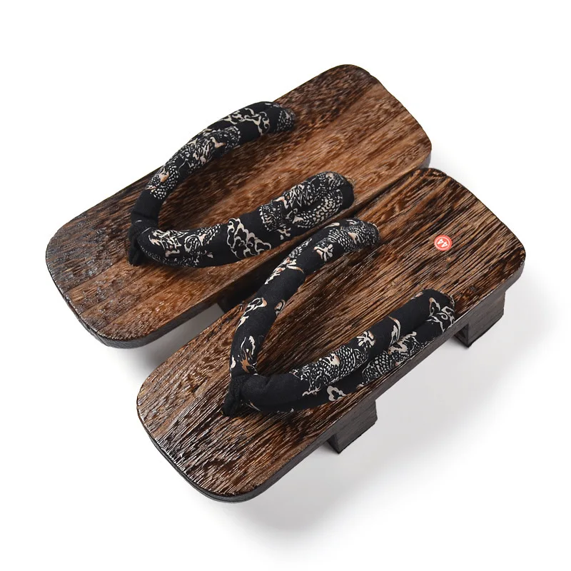 Япония Стиль сандалии гэта с рисунком из аниме; Туфли для костюмированных вечеринок костюм самурая японский Стиль; Сандалии на плоской подошве; Обувь на деревянной подошве; Клоги; Женские шлепанцы из дерева