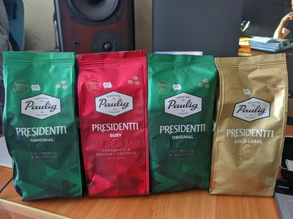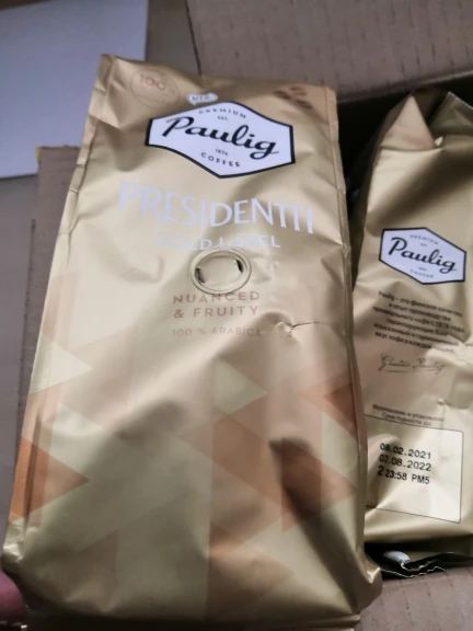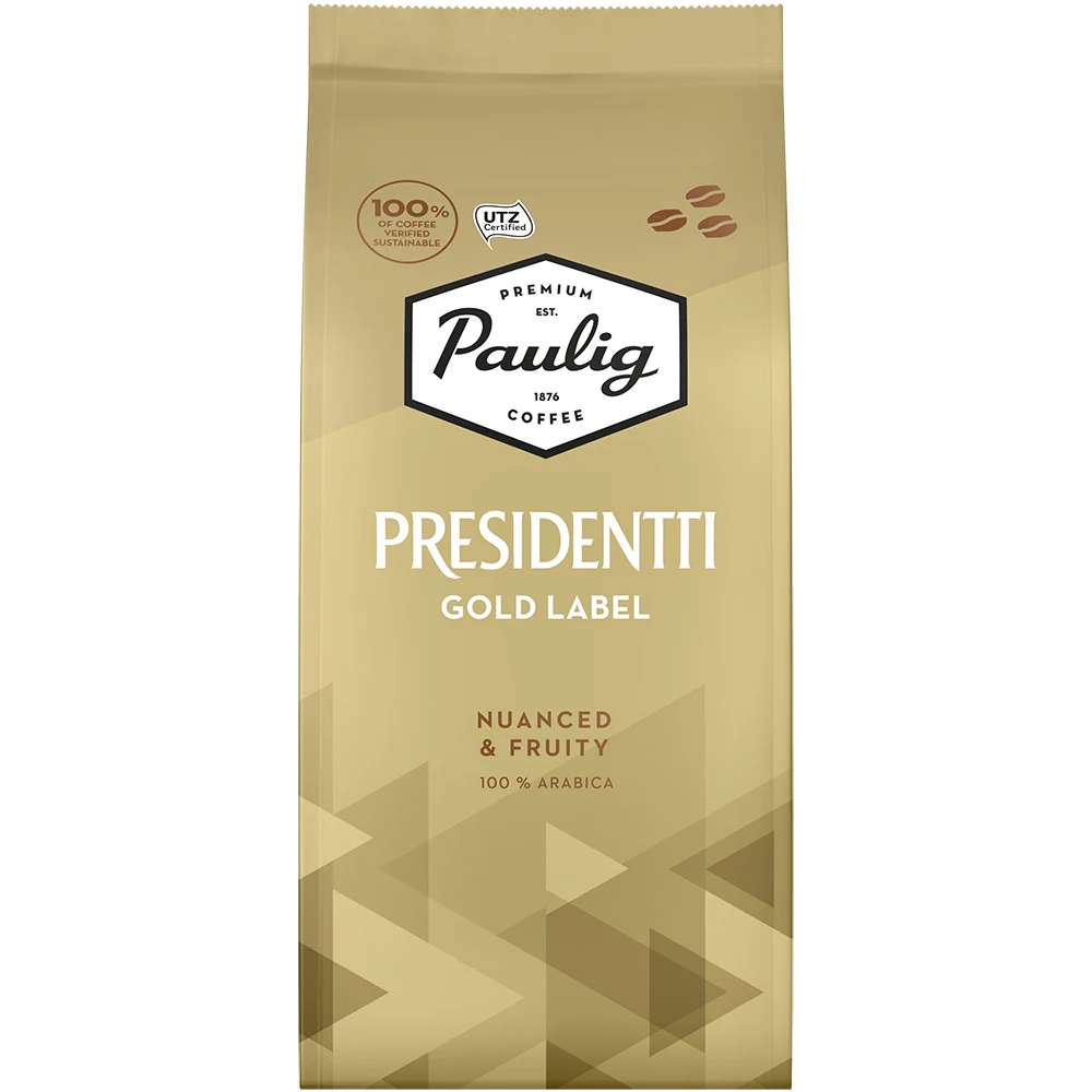 Paulig Presidentti «Gold Label» — уникальный кофе, приготовленный из смеси редких зерен 100% арабики. Тщательно отобранные кофейные зерна из Папуа — Новая Гвинея дарят напитку бархатистый вкус. Благодаря легкой обжарке достигается богатый, неповторимый аромат. Вкус Paulig Presidentti Gold Label мягкий, с легким цветочно-фруктовыми нотками.