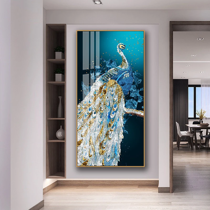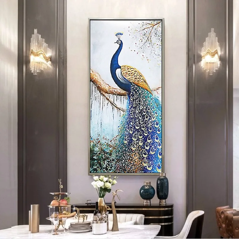 Декоративная картина для прихожей в скандинавском стиле, вертикальная картина маслом, прихожей, коридора, Современная Минималистичная роспись павлином