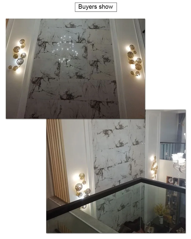 Спецификация настенный светильник в виде листьев лотоса: Тип: Современная Ретро лампа Материал: фурнитура + нержавеющая сталь Держатель лампы: основание G4 (лампа входит в комплект) Источник: светильник 4 светодиода для 4 и 5 головок, 5 светодиодов для 6 и 8 головных ламп Установка: Настенный Размер лампы золотого листа лотоса: 4 головки W25 * h45см 5 головок W25 * h50 см 6 головок W25 * H60 см 8 головок W30 * h72см Диаметр цоколя лампы 15 см Применение: прикроватная тумбочка, спальня, столовая, кухня, гостиная, офис, магазин украшения настенный светильник