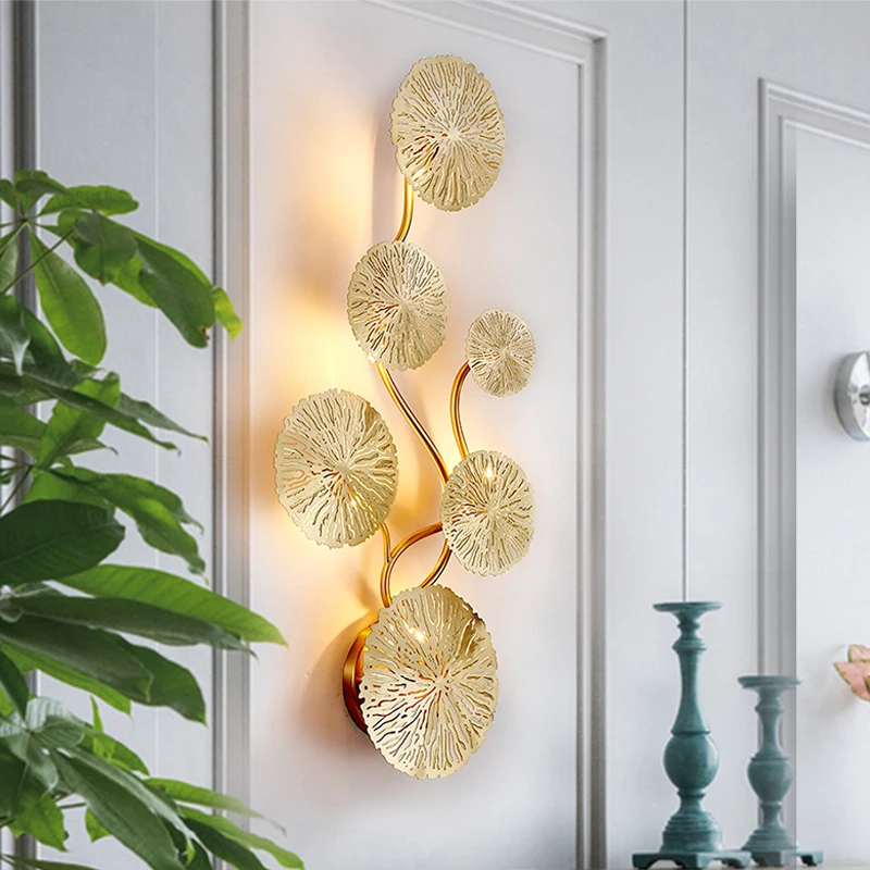 Настенное бра G4 лампы Artpad Медь блеск золотой лотос лист настенный светильник Винтаж Ретро прикроватная Гостиная художественный декор домашнего освещения