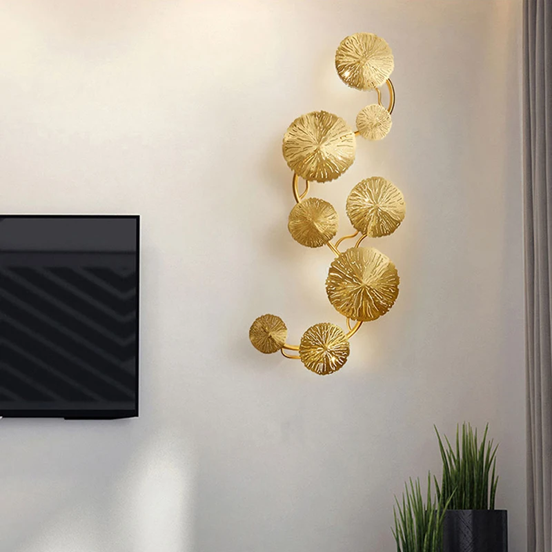 Artpad медный блеск золотой лотос лист настенный светильник винтажный Ретро прикроватный Декор для гостиной искусство Домашнее освещение настенные бра G4 лампаДля xiaomiao