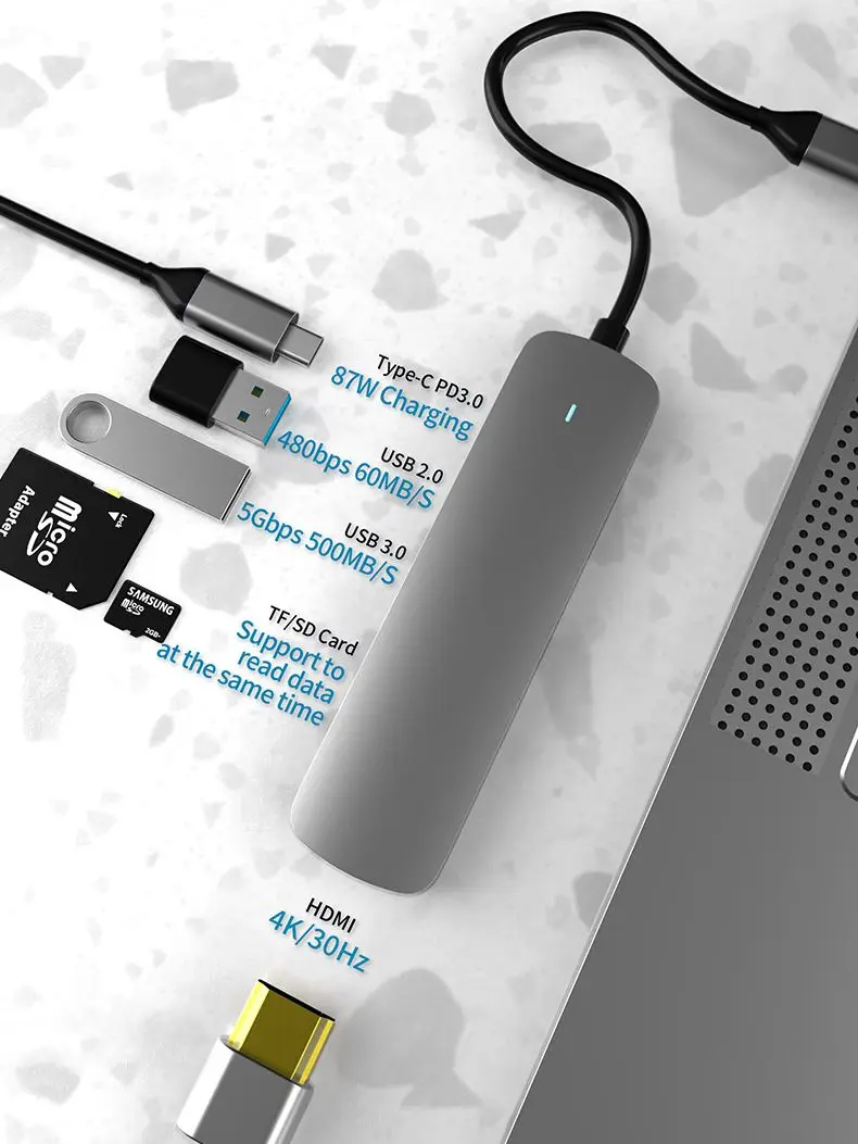 Type-c-HDMI + USB3.0 * 1 + USB2.0 * 1 + SD + TF + PD