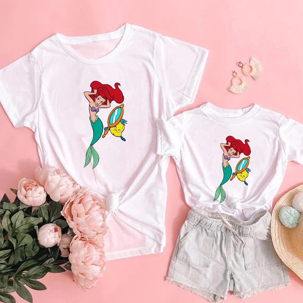 Семейная одежда, женская футболка с принтом маленькой Русалочки Ари...