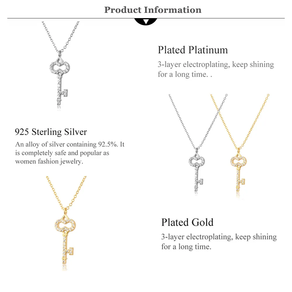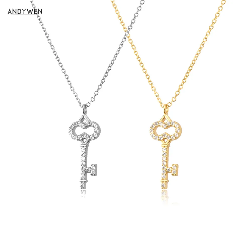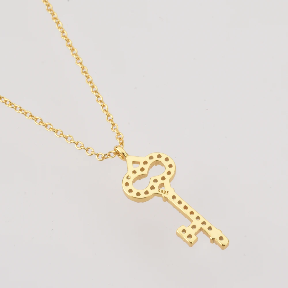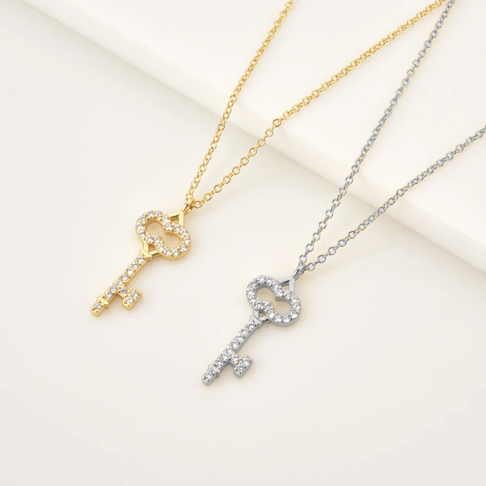 Цепочка с кулоном в виде ключа с фианитом, серебро 925 пробы