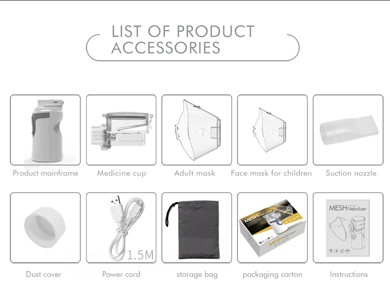 В основном используется для лечения различных заболеваний верхних и нижних дыхательных путей, таких как простуда, жар, кашель, астма, боль в горле, фарингит, ринит, бронхит, пневмокониоз и другие заболевания в трахее, бронхи, альвеолярные, грудь. Небузированная Ингаляционная терапия является важным и эффективным методом лечения респираторных заболеваний. Небулайзер используется для распыления жидкости в крошечные частицы, и препарат попадает в дыхательные пути и легкие путем дыхательных ингаляций, тем самым достигая безболезненности. Для быстрого и эффективного лечения, пожалуйста, используйте аэрозольное управление под руководством врача.