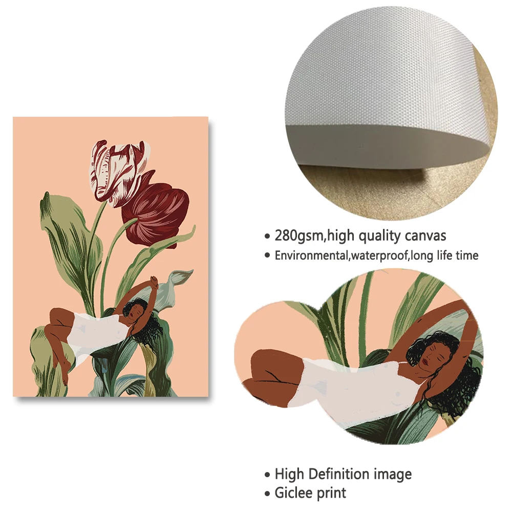 Абстрактная африканская Женская Цветочная листья настенная Картина ...