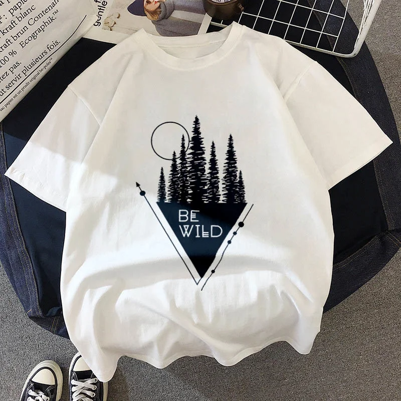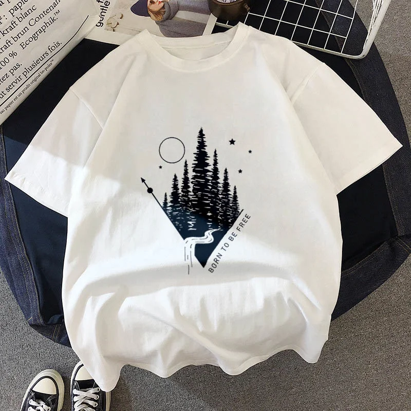 Женская футболка Harajuku, белая футболка с принтом в виде темного леса, букв, Вселенной, веры, круглым вырезом, 2021