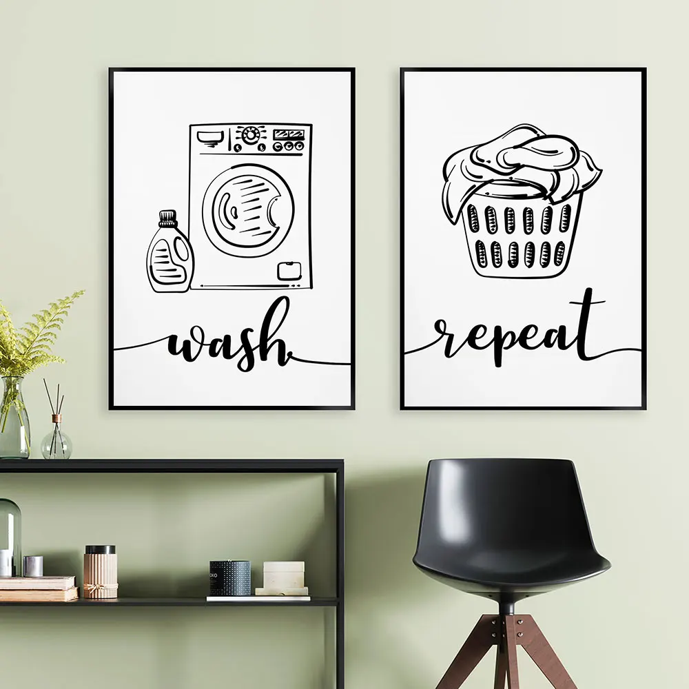 Стирать сухой складывать повторное белье Черно-белые настенные художественные принты на холсте картина плакат и печать настенные картины хозяйственная комната Домашний декор