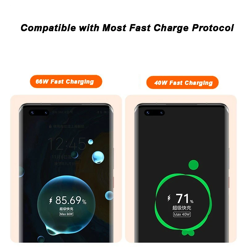 USB Type-C Сверхбыстрый зарядный кабель для Huawei Mate 40 Pro, 30, 20, P40, P30 Lite, P20, Honor V40, V30, 30S, 30i, 9X, 8X, QC3.0, 66 Вт, 6 А