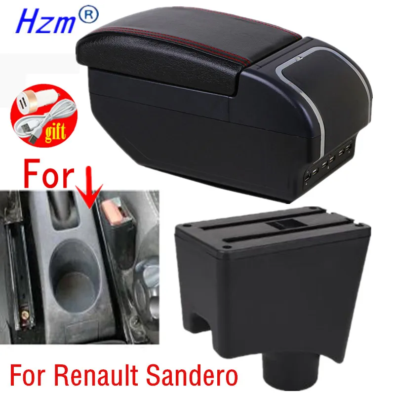 Подлокотник для Renault Dacia Sandero Logan, двухслойный центральный подлокотник с USB-зарядкой, пепельница для хранения, автомобильные аксессуары