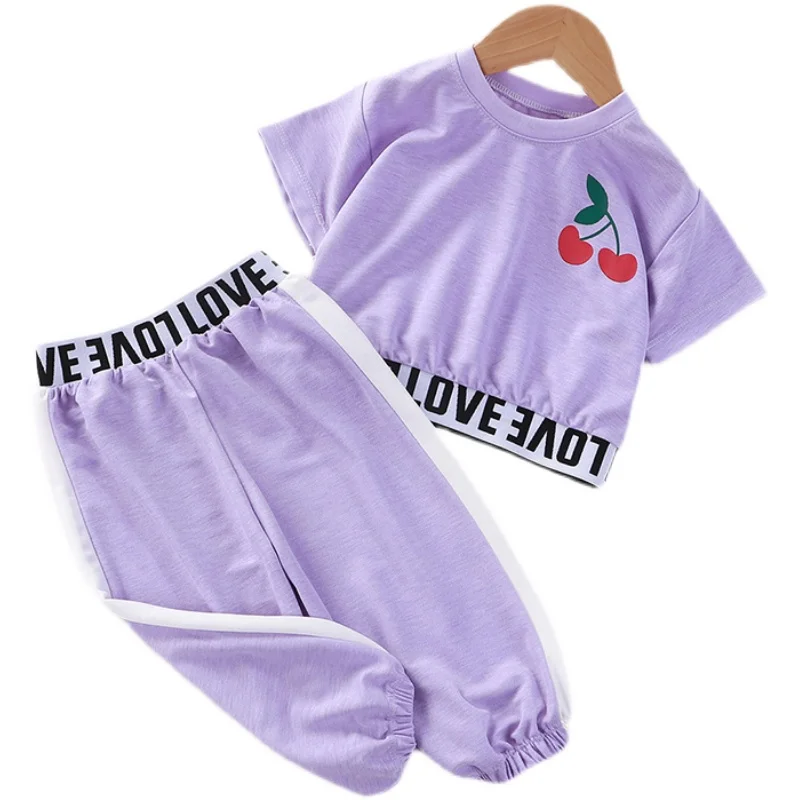 2021 Летний милый костюм из 2 предметов с вишней для девочек повседневный комплект одежды для маленьких детей