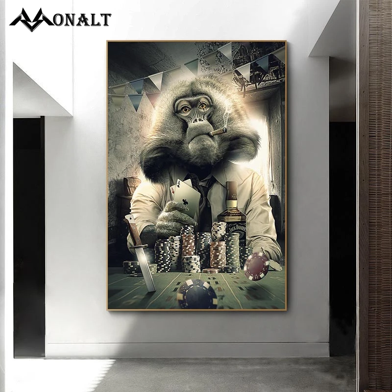 Граффити искусство курить обезьяна игральные карты бильярдная комната бар холст живопись абстрактные животные настенные художественные Плакаты Декор кабинета