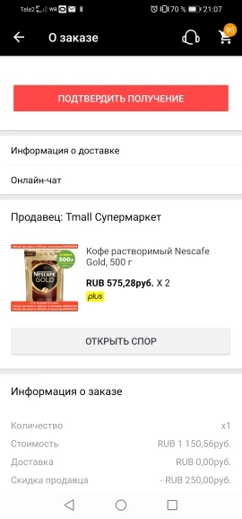 Очень благодарна продавцу за товар и быструю доставку, все как всегда на высшем уровне, доставили быстро, ничего не пролилось, срок годности хороший. Кофе постоянно такой беру, мне очень нравится, в этом магазине получилось очень выгодно и по объёму и по цене.