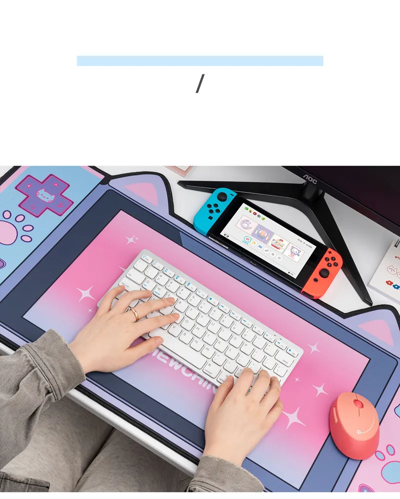 Большой Настольный коврик для мыши с кошачьими ушами, нескользящий ковер, Мягкий Силиконовый поднос для клавиатуры и ноутбука для девушек, коврик для компьютерной мыши Switch Lite