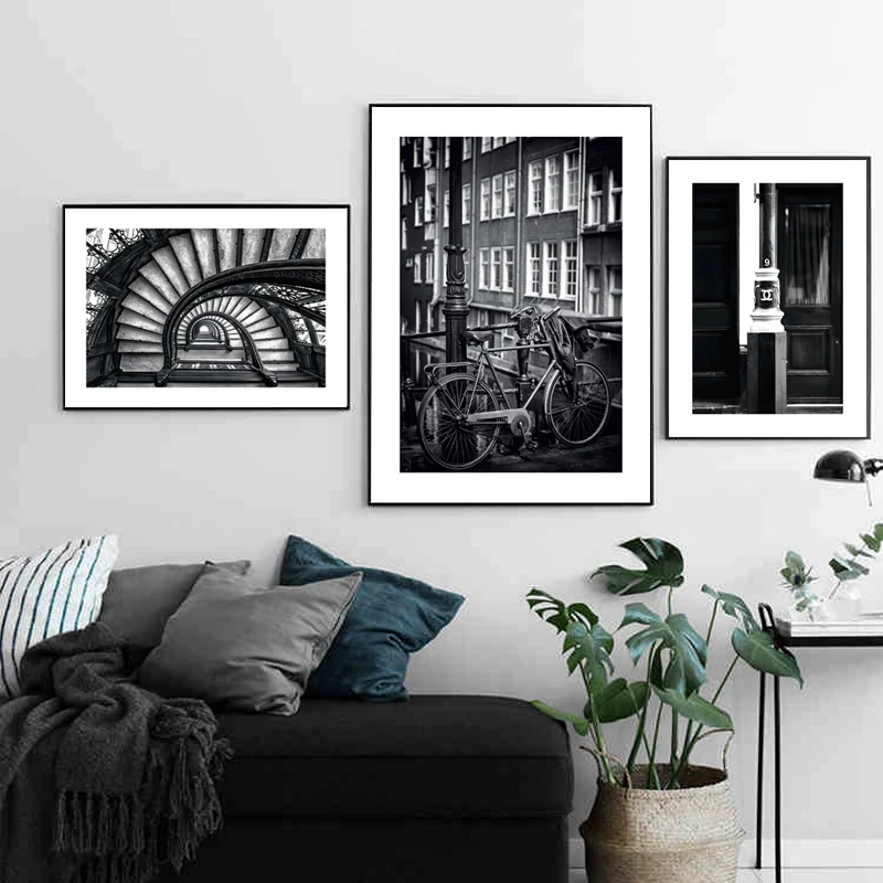 Черно-белый модный постер, уличный пейзаж, настенная живопись, абстрактная картина, фотография, современное оформление помещения картина