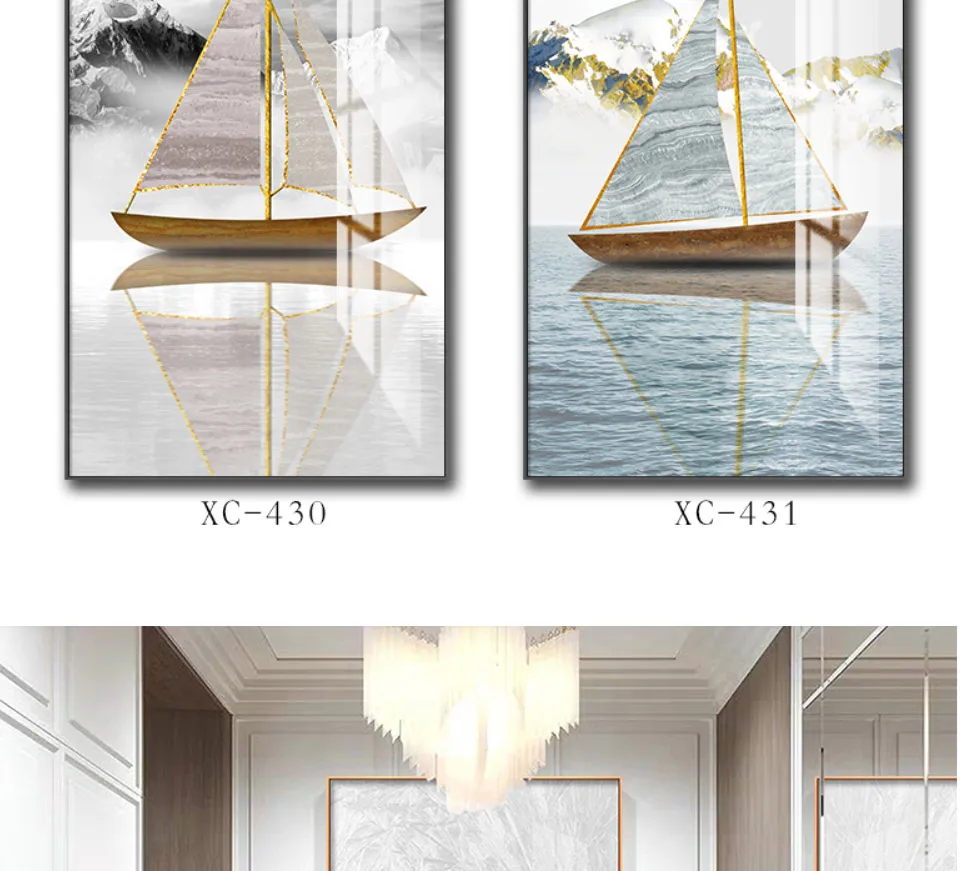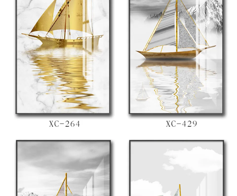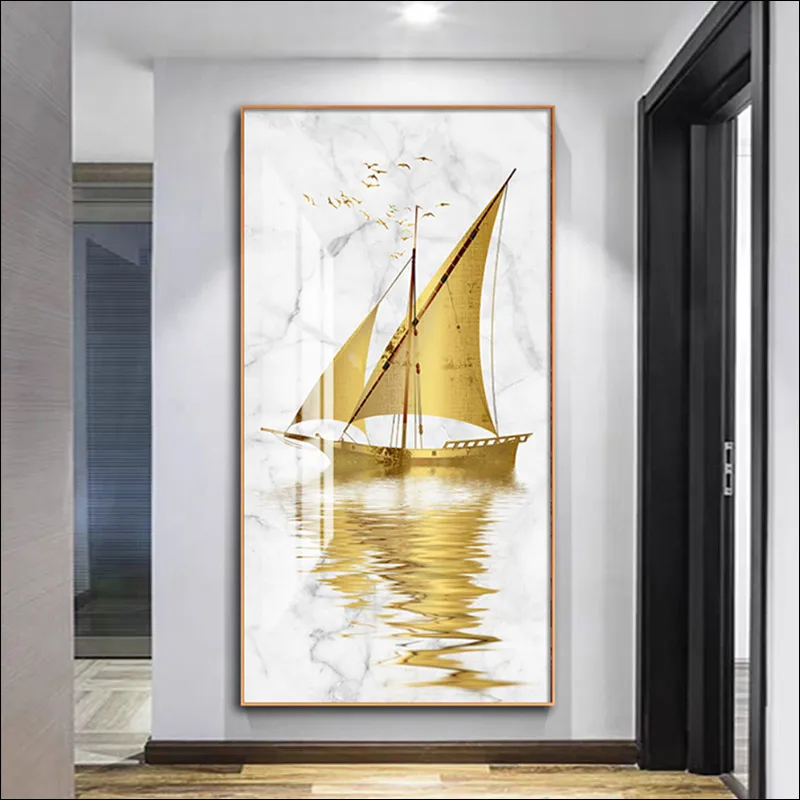 Современные, размеренный осенний пейзаж живопись на холсте лодка искусства плакат парусный спорт на морская роспись Семья печать плакатов Водонепроницаемый подарок 60X120 ВЕРТИК