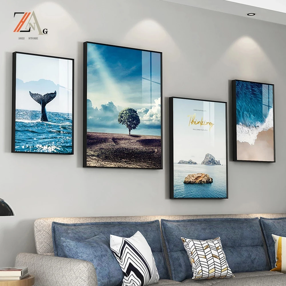 Современный минималистичный стиль синий океан Пейзаж Плакат на холсте картина принт Куадрос художественное украшение роспись для домашнего декора без оборки
