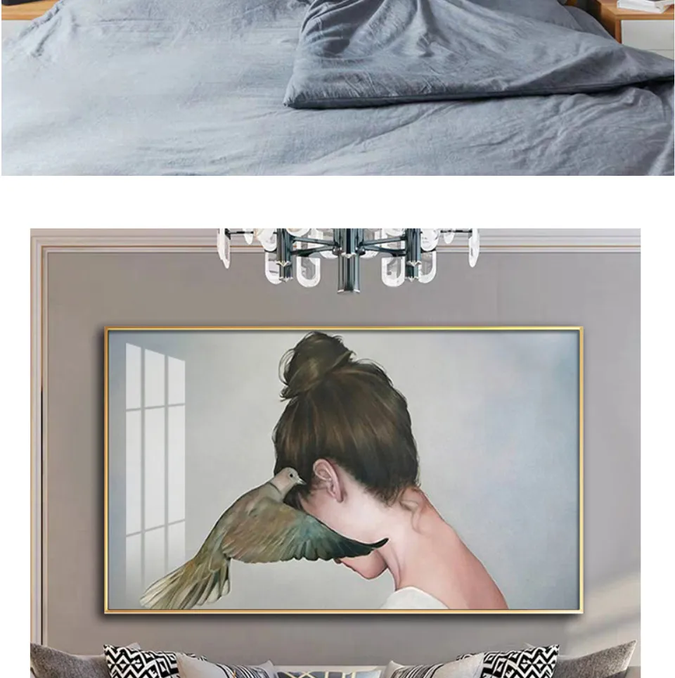 Картина на холсте с изображением птицы и девушки, 120x60, 80x40 см