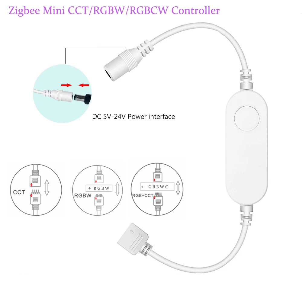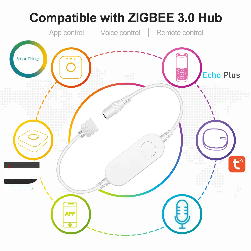 Умная мини-светодиодная лента Zigbee RGB + CCTRGBWCW, устройство для голосового управления с Echo plus smartThings ZIGBEE3.0 Hube, 5 В постоянного тока, 12 В, 24 В
