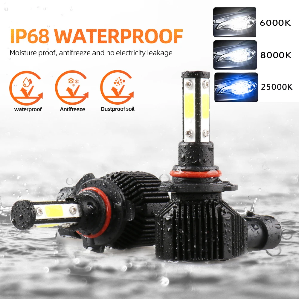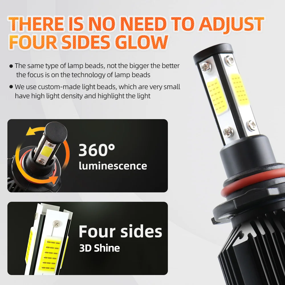 Светодиодные Автомобильные фары H7, 4 стороны, 360 градусов, LED, 14000LM H1 H3 H4 H8 H9 H11, светодиодсветодиодный фары HB3 9005 HB4 9006, автомобильные фары 6000K