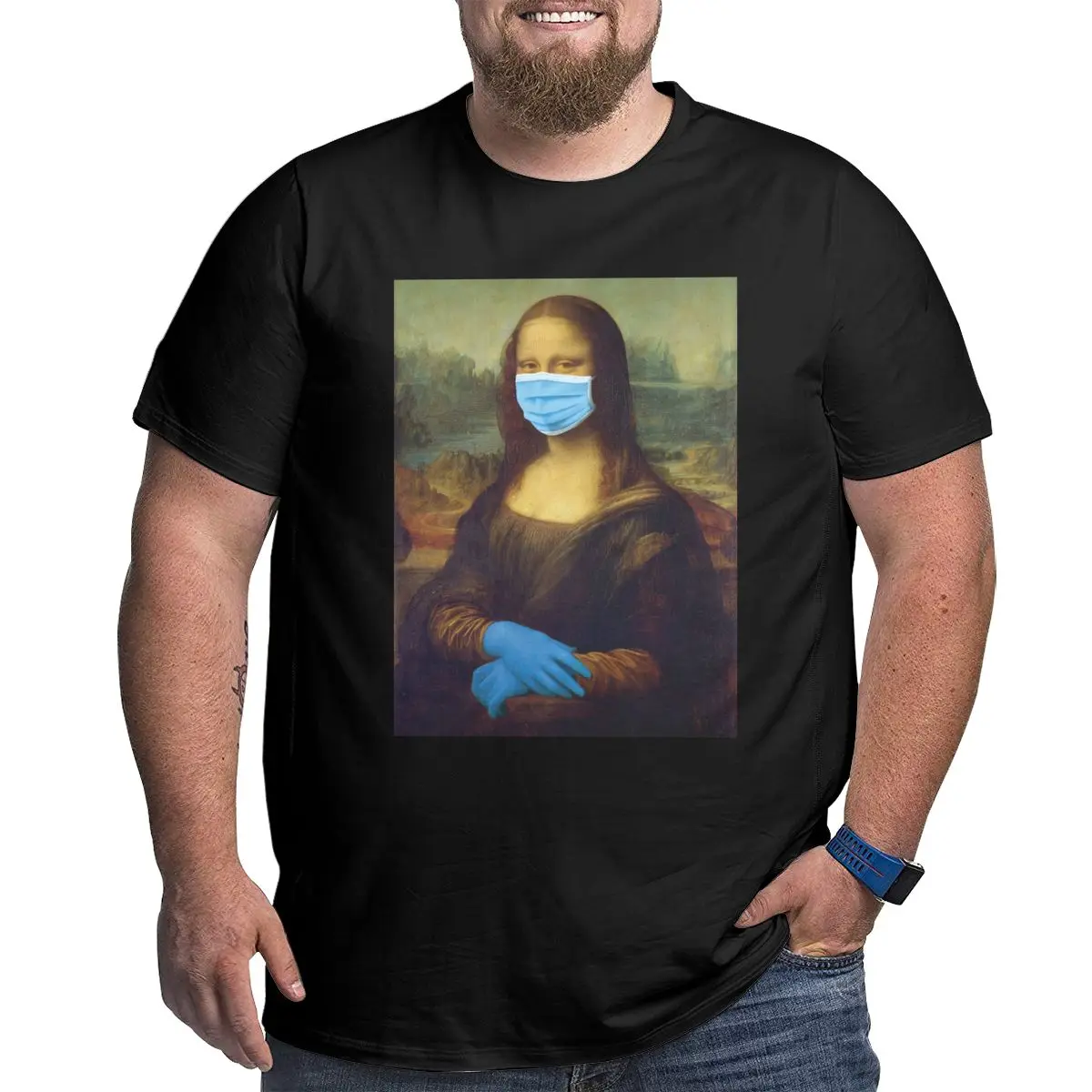 Мужская футболка с изображением Моны Лизы в маске, футболка большого роста, футболка большого размера 4XL 5XL 6XL