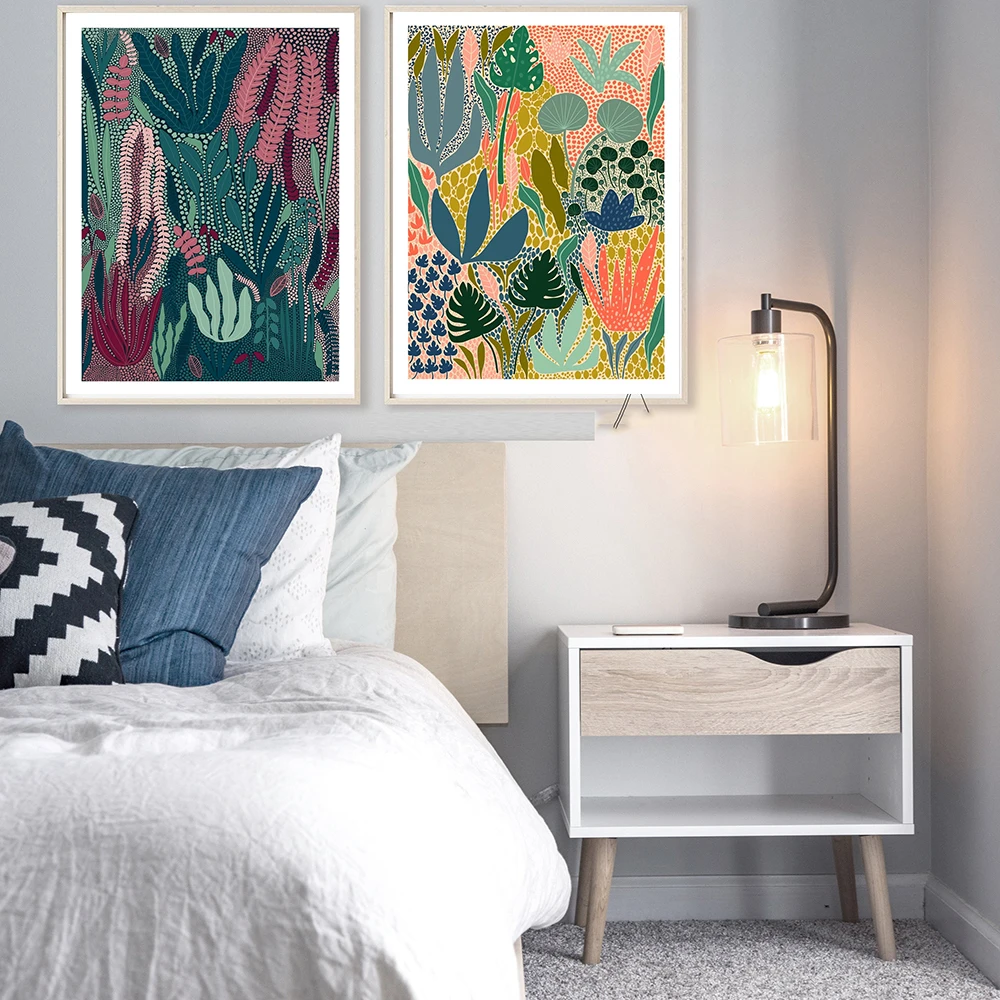 Модный Ночной сад с растительными принтами Бохо плакат Ботанический Зеленый Холст Картина тропическая стена Художественная Картина декор для гостиной