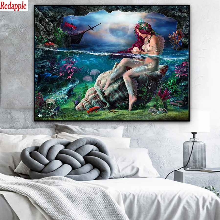 Алмазная живопись, лидер продаж, домашнее искусство, Сексуальная Русалка в воде, вышивка крестиком в виде раковины, Алмазная мозаика, украшенная бисером, рукоделие