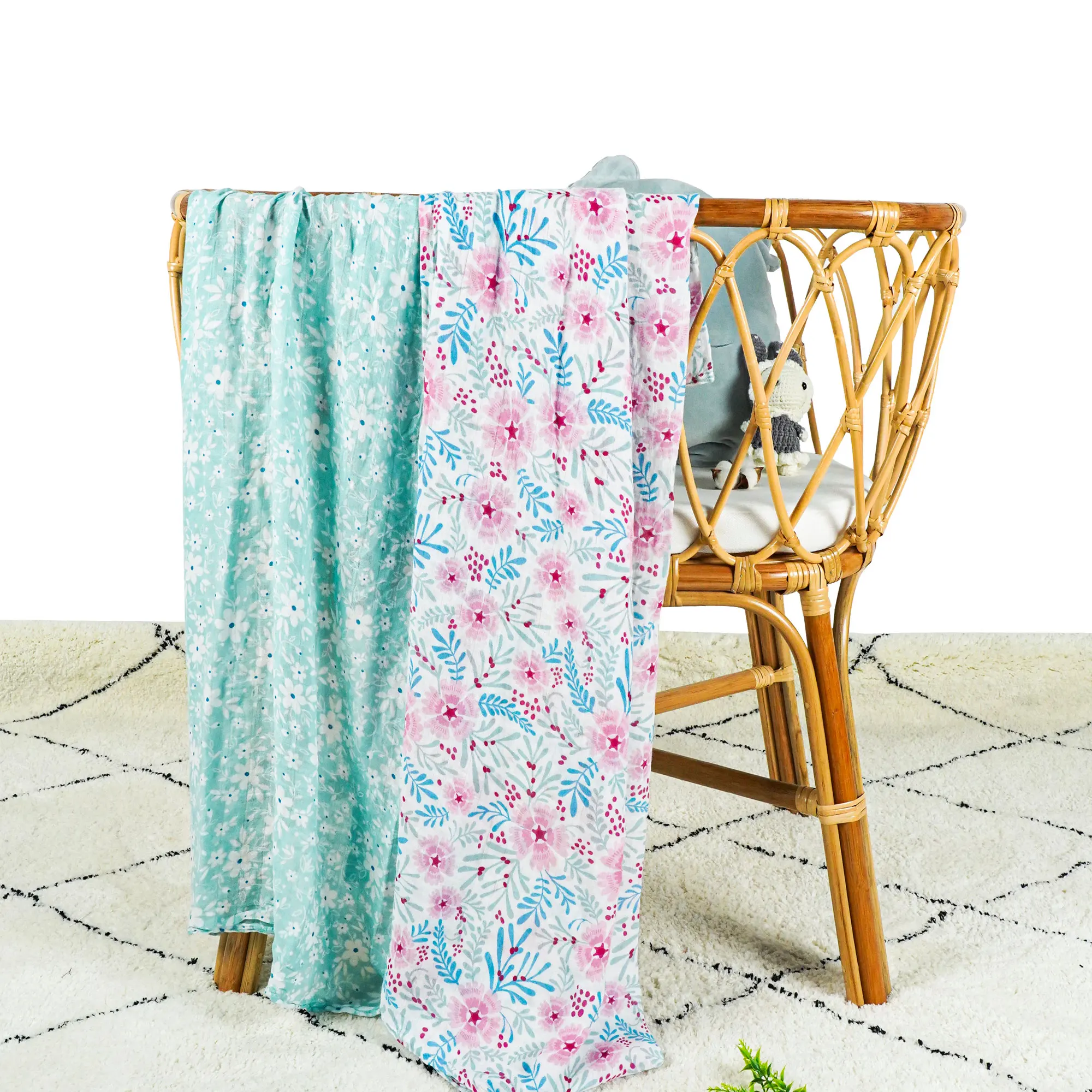 Муслиновое Пеленальное Одеяло с цветами, из бамбукового хлопка, для новорожденных