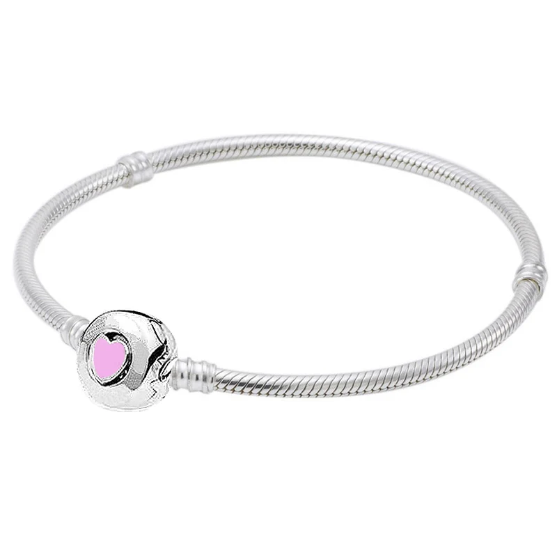 Оригинальный Розовый Замечательный Любовь Сердце застежка змея цепи Браслет Fit бусины из стерлингового серебра 925 серебряный браслет Diy ювелирные изделия