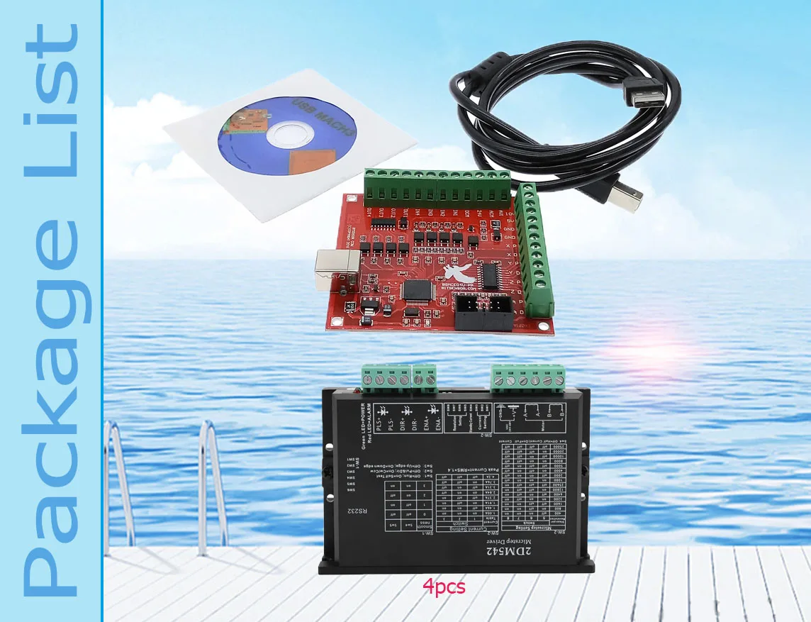 1 красная плата + 4 драйвера 2DM542, включая некоторые аксессуары