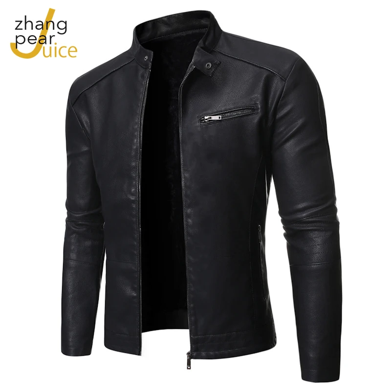 Мужская кожаная куртка из искусственной кожи, с бархатным покрытием