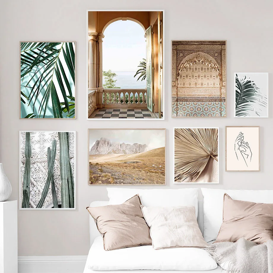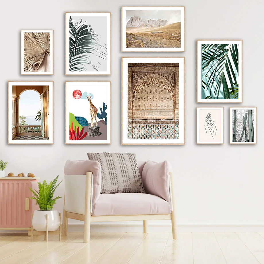 Настенная картина с изображением исламского кактуса, гор, веера, абстрактная линия, Настенная картина, скандинавские постеры и принты, настенные картины для декора гостиной