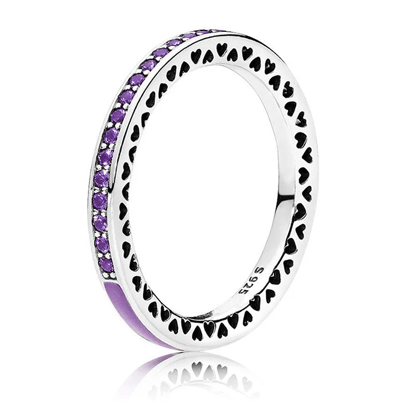 Аутентичные 925 Серебряное кольцо Сияющий Кольца Сердце с разноцветной эмалью кольцо с кристаллом для женщин, подарок, ювелирное изделие