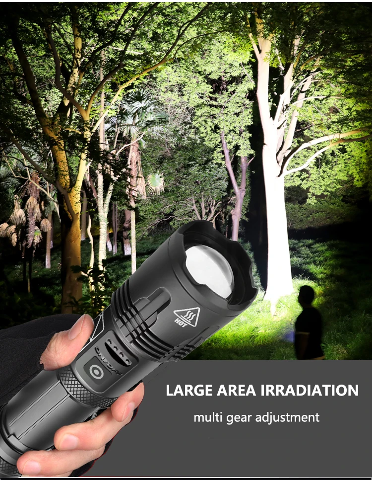 Самый мощный светодиодный светильник xhp70, масштабируемый перезаряжаемый usb-дисплей, супер яркий фонарь XHP50 18650 26650, ручной светильник