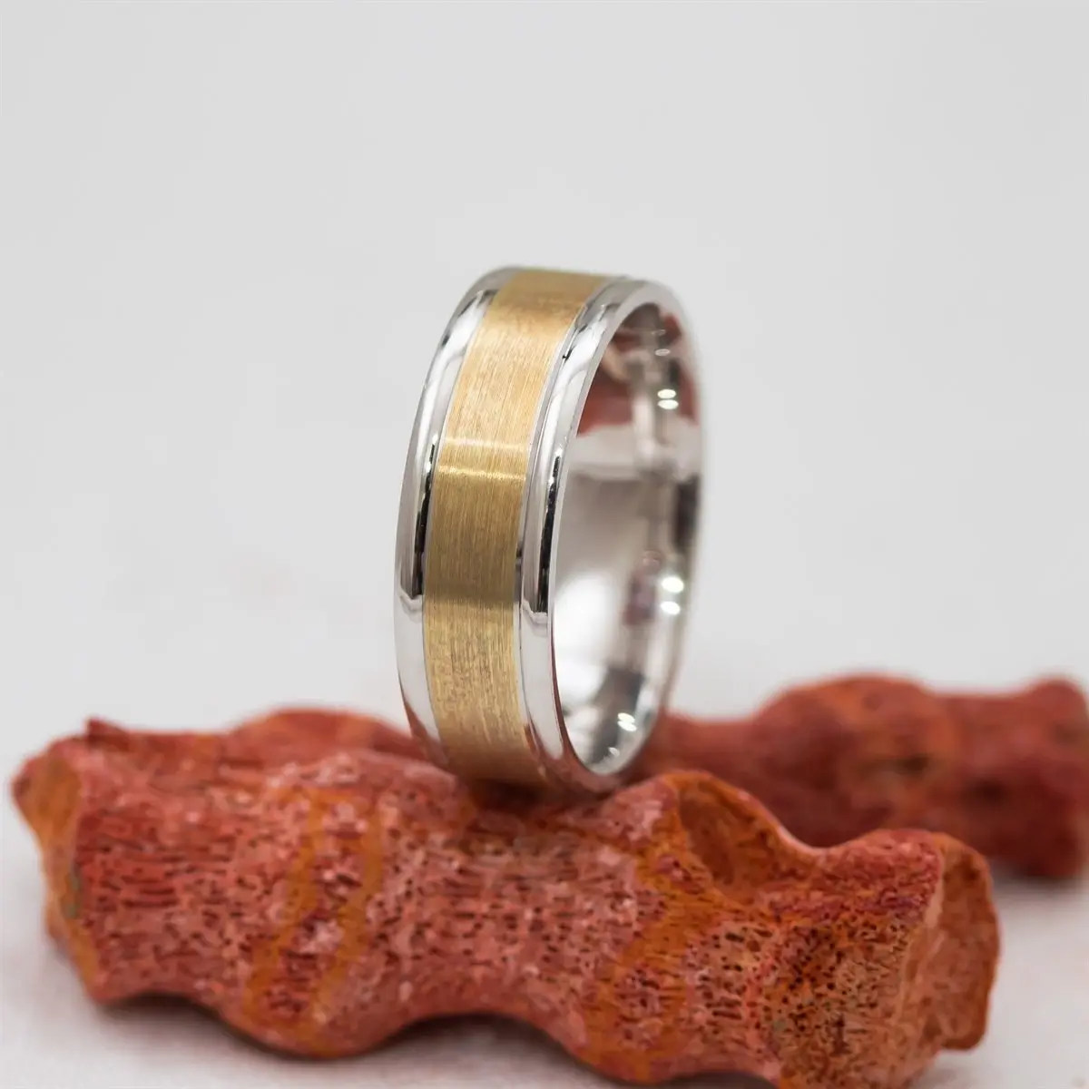 Плоское золотистое серебристое обручальное кольцо унисекс Ancl