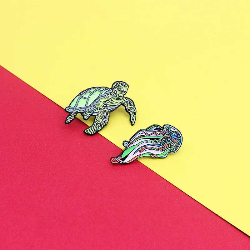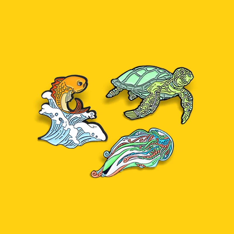 Брошь в виде морской рыбы, животного, акулы, черепахи, медузы, золо...